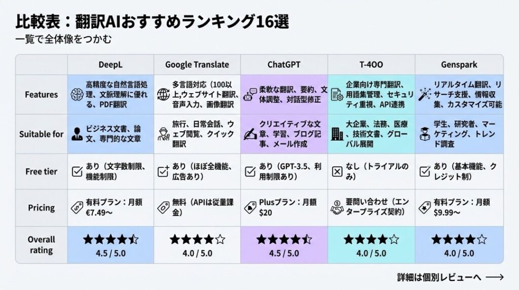 - 比較表:翻訳AIおすすめランキング14選