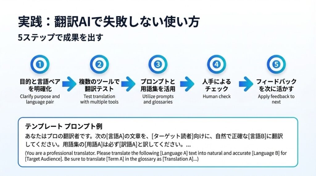- 実践:翻訳AIで失敗しない使い方(テンプレ・手順)