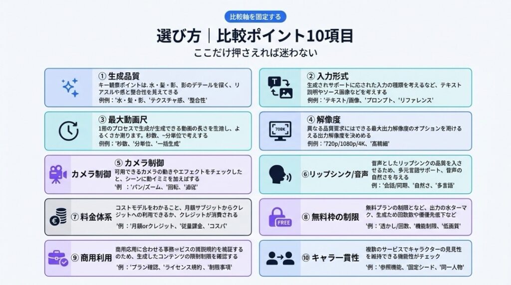 3. 動画生成AIの選び方|比較ポイント10項目