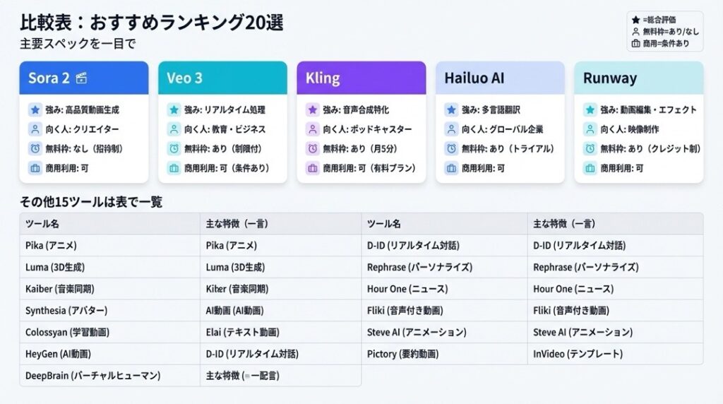 ここだけ読んでも、自分に合った動画生成AIを選べます。
