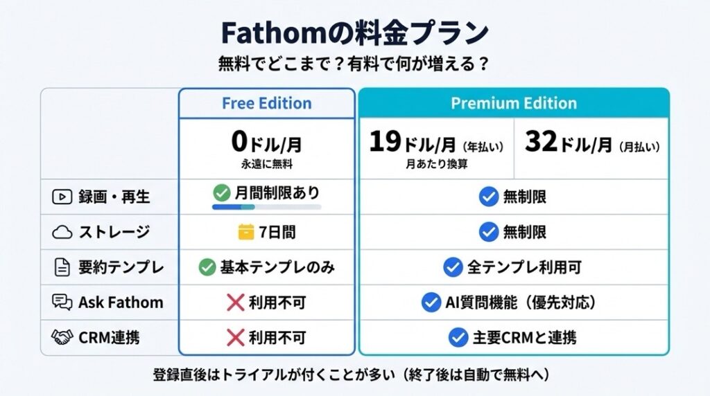 • AI書き換え: 「Ask Fathom」などの高度なAIアシスタント機能が無制限
