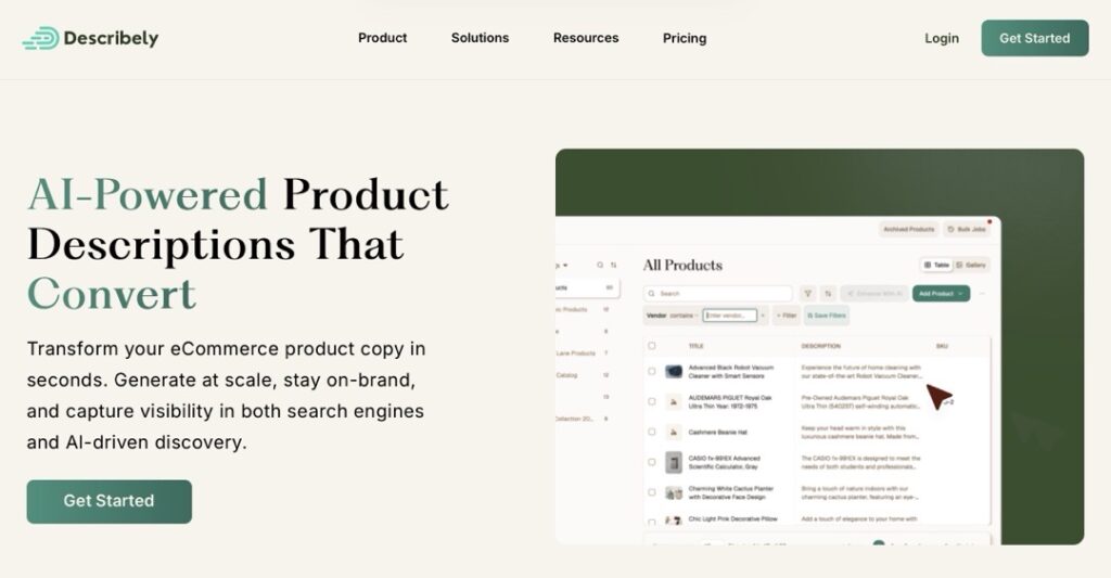 • 理由: DescribelyはShopifyやWooCommerceと直接連携でき、商品データベースから自動で説明文・タイトル・タグを生成します。Hypotenuse AIも同様にShopify連携があり、数百件の商品説明を一括生成できます。