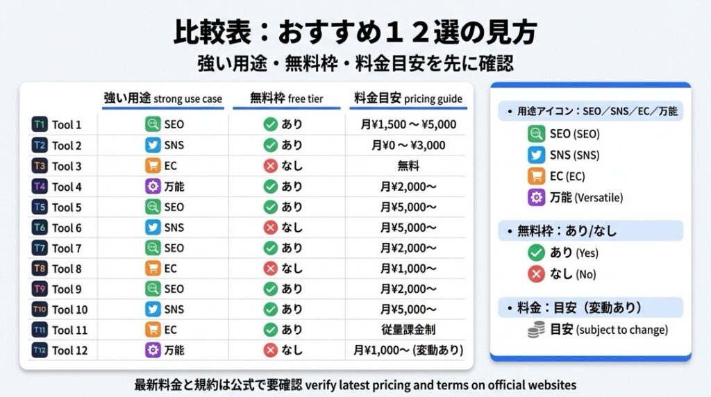 1. 結論:文章作成AIの目的別おすすめ