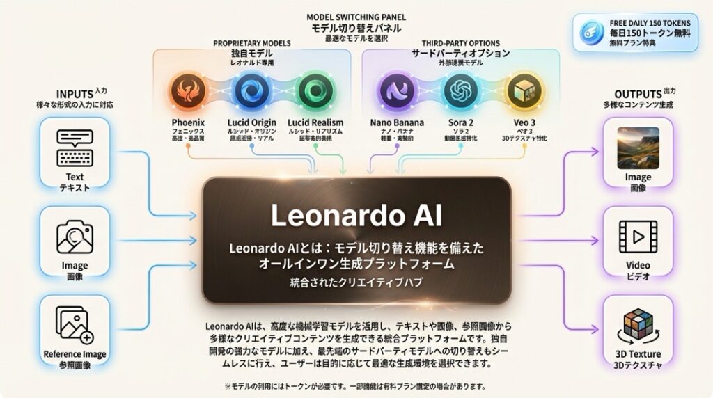 - 🔥 Phoenix(フェニックス):Leonardo AI初の独自開発モデル。長い指示文にも正確に従い、画像内にテキストを美しく描画できるのが特徴です。