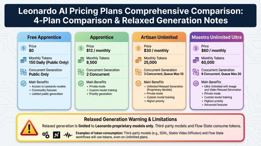 Leonardo AIには、無料プランを含めて4つの個人向けプランが用意されています。