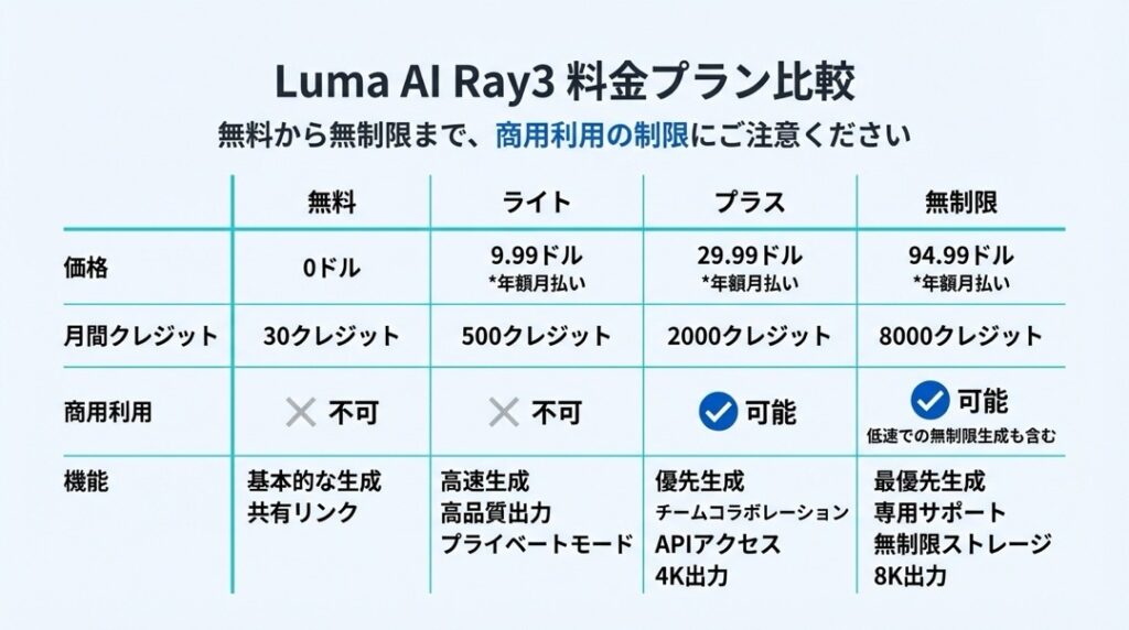 Luma AI Ray3を使うには、クレジット(ポイント)が必要です。