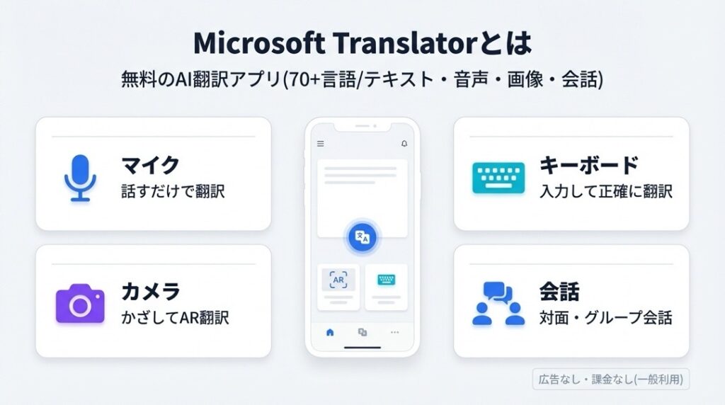 Microsoft Translatorは、IT業界の巨人Microsoft社が提供する、完全無料のAI翻訳アプリです。