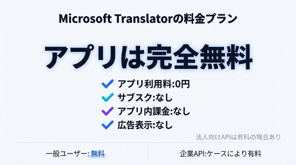 企業向けのAPI利用などは有料ですが、私たち一般ユーザーがスマホアプリとして使う分には、すべての機能を無料で、しかも広告なしで利用できます。