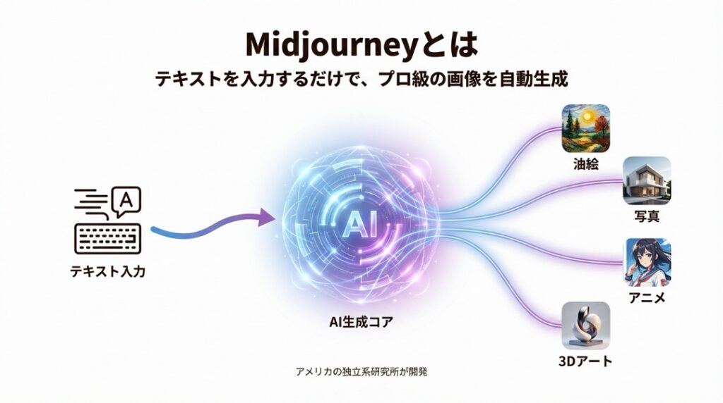 Midjourneyは、テキストを入力するだけでプロ級の画像を自動生成できるAIツールです。