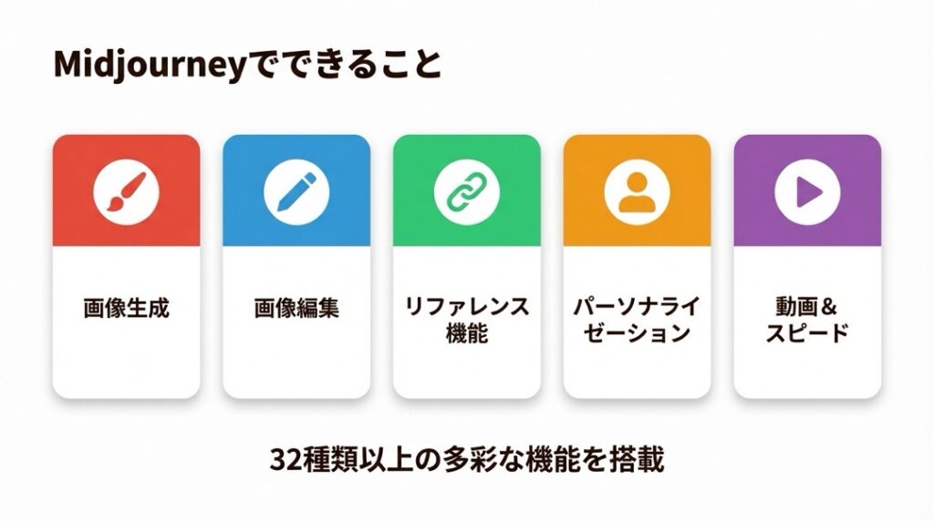 Midjourneyは「画像を作るだけのツール」と思われがちですが、実はもっと多彩な機能を持っています。