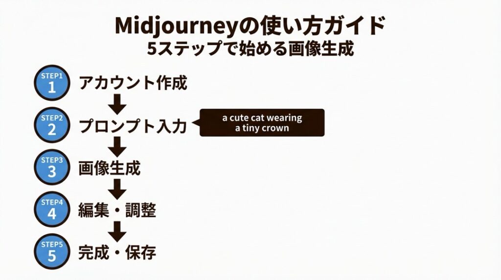 ここからは、Midjourneyを実際に使い始める方法を、ステップバイステップで解説します。