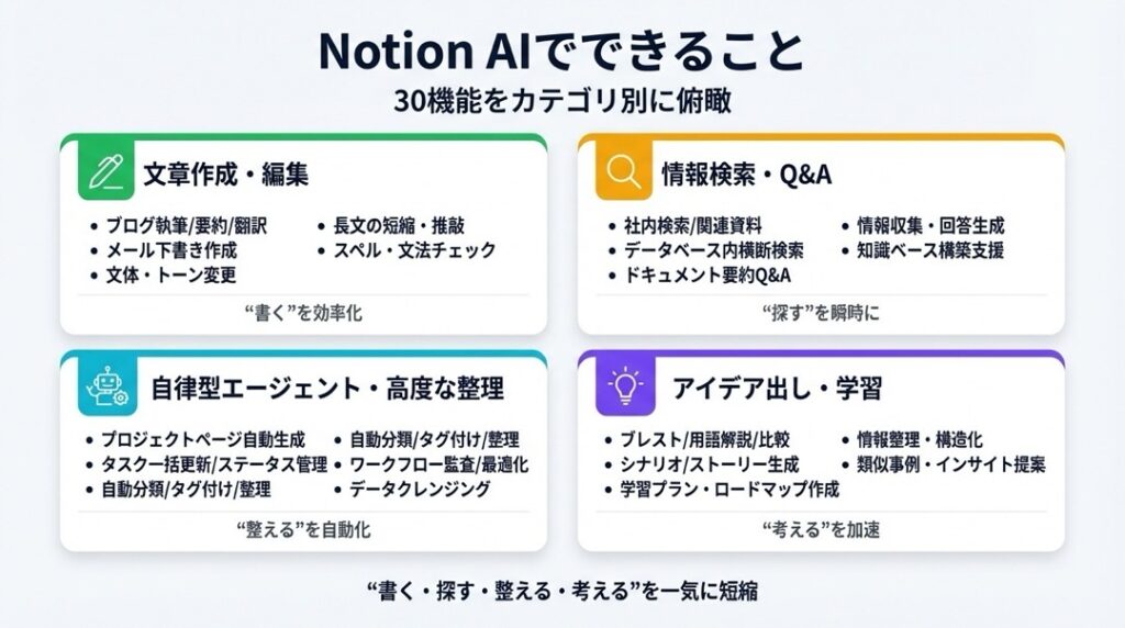 Notion AIでできることは、驚くほど多岐にわたります。