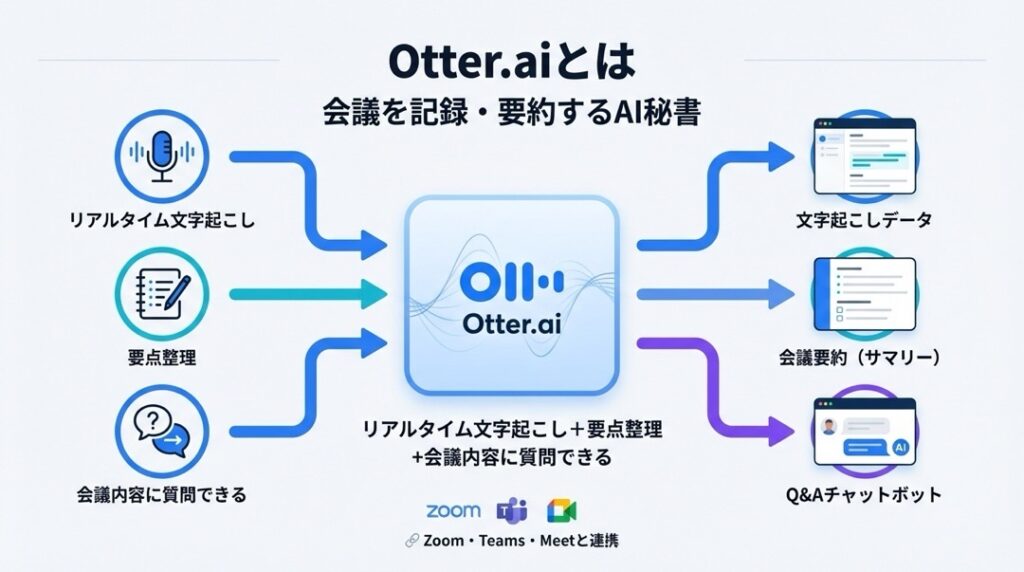 Otter.ai(オッター・エーアイ)は、高度なAI技術を搭載した自動文字起こし・会議アシスタントツールです。