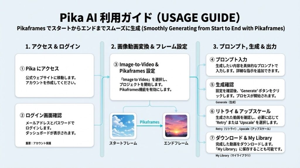 ここでは、最新機能である「Pikaframes(開始点と終了点を指定して動かす機能)」を使って、誰でもプロ並みの動画を作る手順をステップバイステップで解説します。
