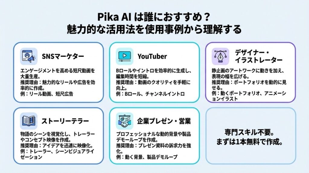 Pika AIは、以下のような方にとって「最強の武器」になります。