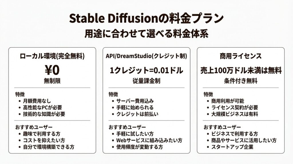 Stable Diffusionは、使い方によって料金体系が異なります。