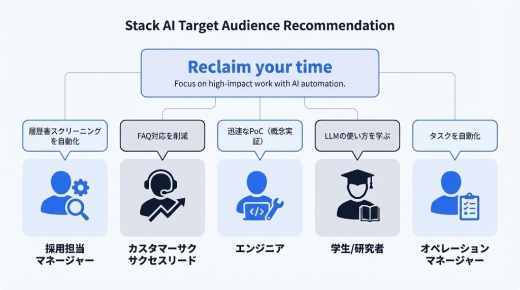 Stack AIは、特に「効率化」を求める以下のような方々に強力な武器となります。