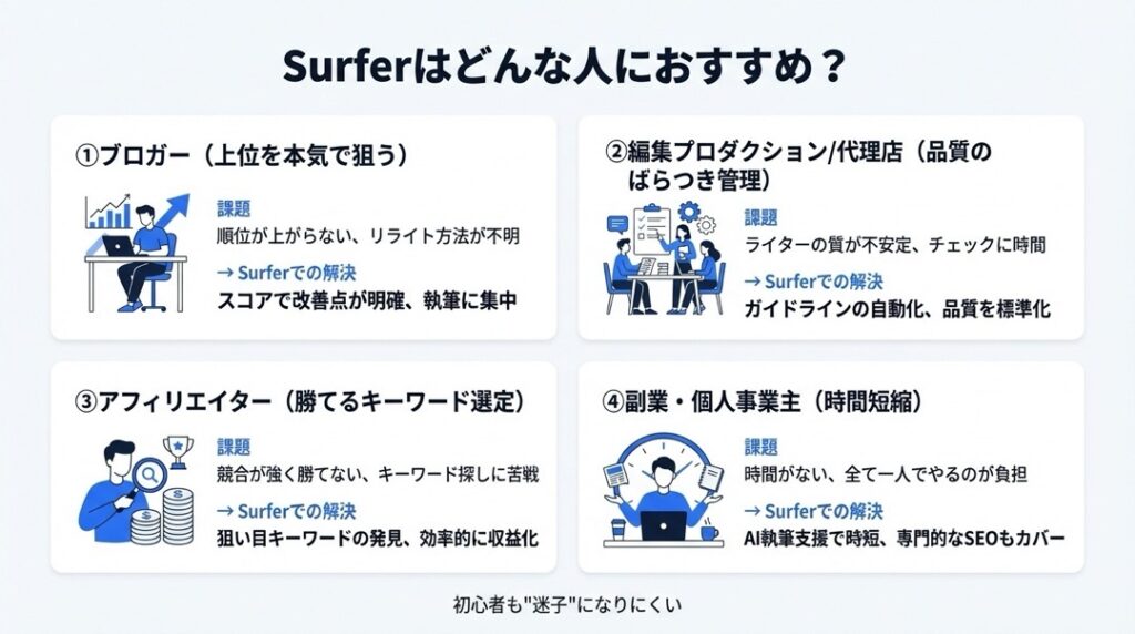 Surferは「ただ書く」だけでなく、「勝てる戦略」を授けてくれます。