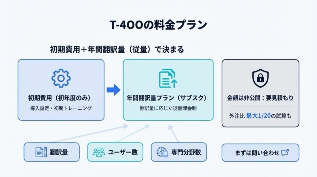 T-4OOの料金体系は、企業のニーズに合わせるため少し特殊です。