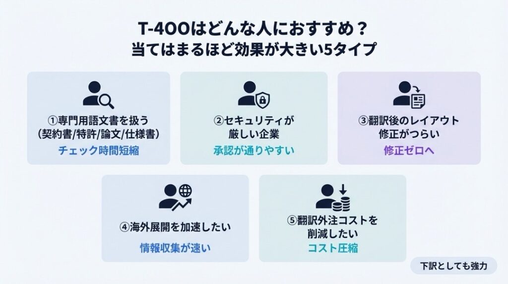 T-4OOは、特に以下のような方に自信を持っておすすめできます。
