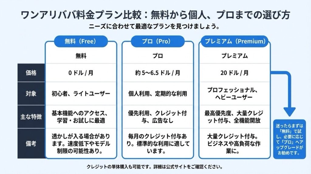 ※料金やプラン内容は変更される可能性があります。必ず公式サイト(wan.ai)で最新情報をご確認ください。