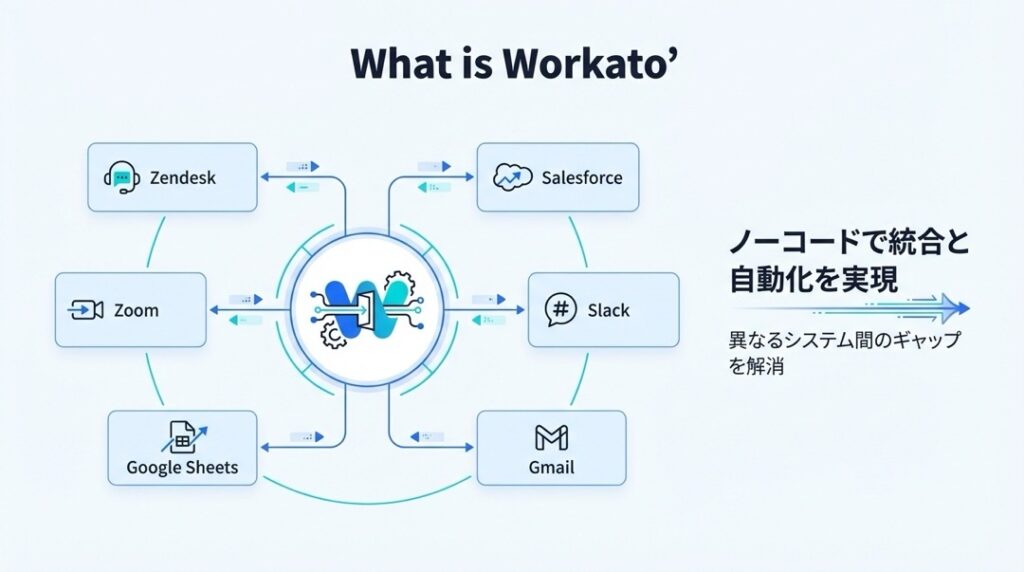 Workatoは、企業の業務システム同士をつなぎ、作業を自動化するためのプラットフォームです。
