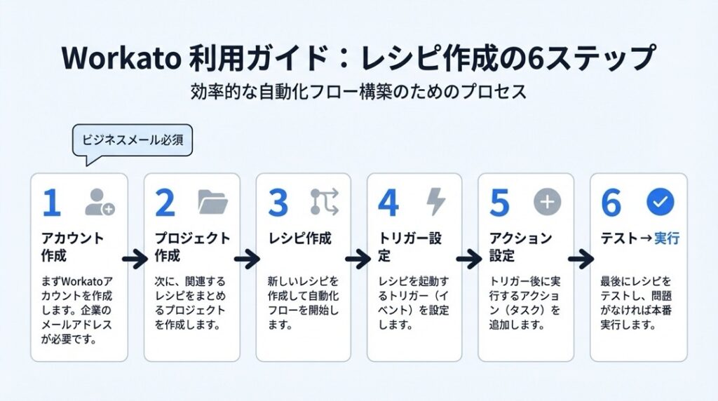 それでは、実際にWorkatoを使い始める手順を見ていきましょう。